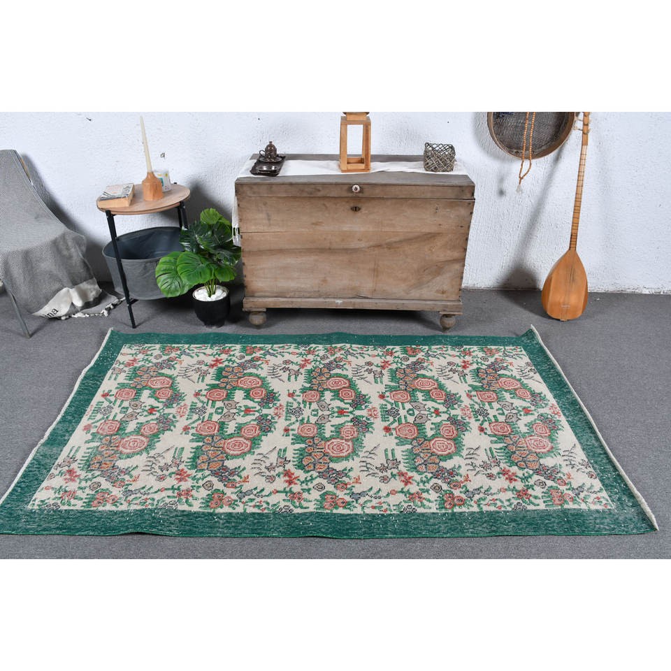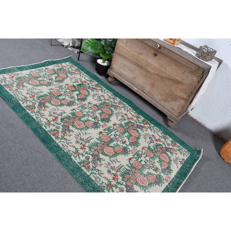 พรมปูพื้นขนแกะสไตล์ตุรกีวินเทจ38x68ฟุตการออกแบบการเย็บปะติดปะต่อกันแบบแบนสีเขียวสำหรับตกแต่งห้องนั่งเล่นพร้อมแผ่นรองทำจากยาง