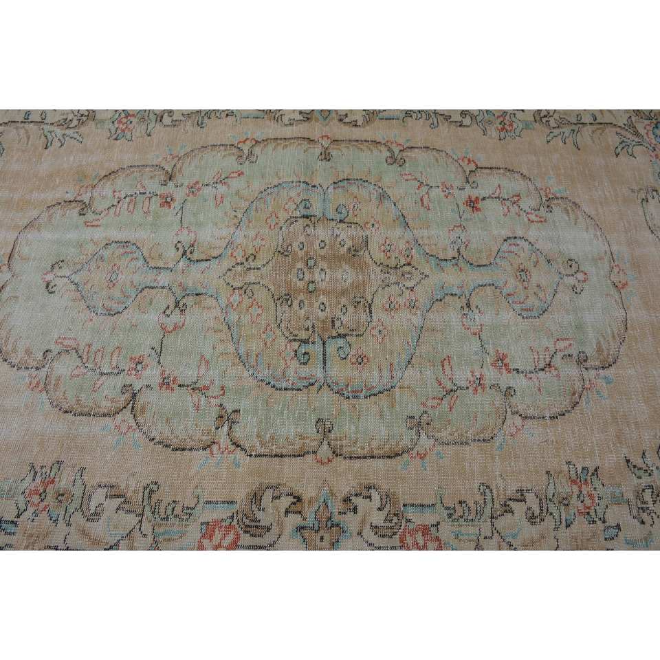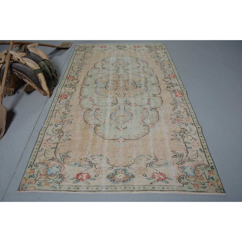 พรมขนสัตว์ตุรกีแนววินเทจผืนใหญ่ลายเย็บปะต่อสีเบจสีเขียว4ft 9in x 8FT สี่เหลี่ยม5in ยางขนาด10มม. สำหรับตกแต่งห้องโถง