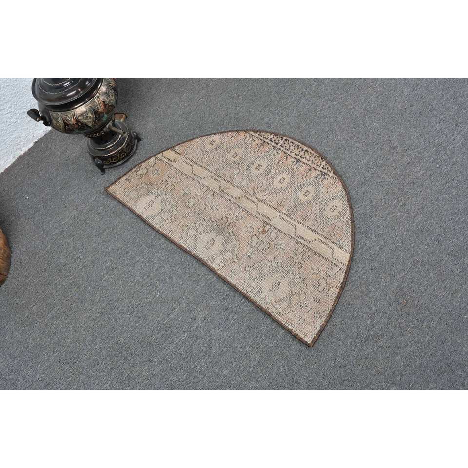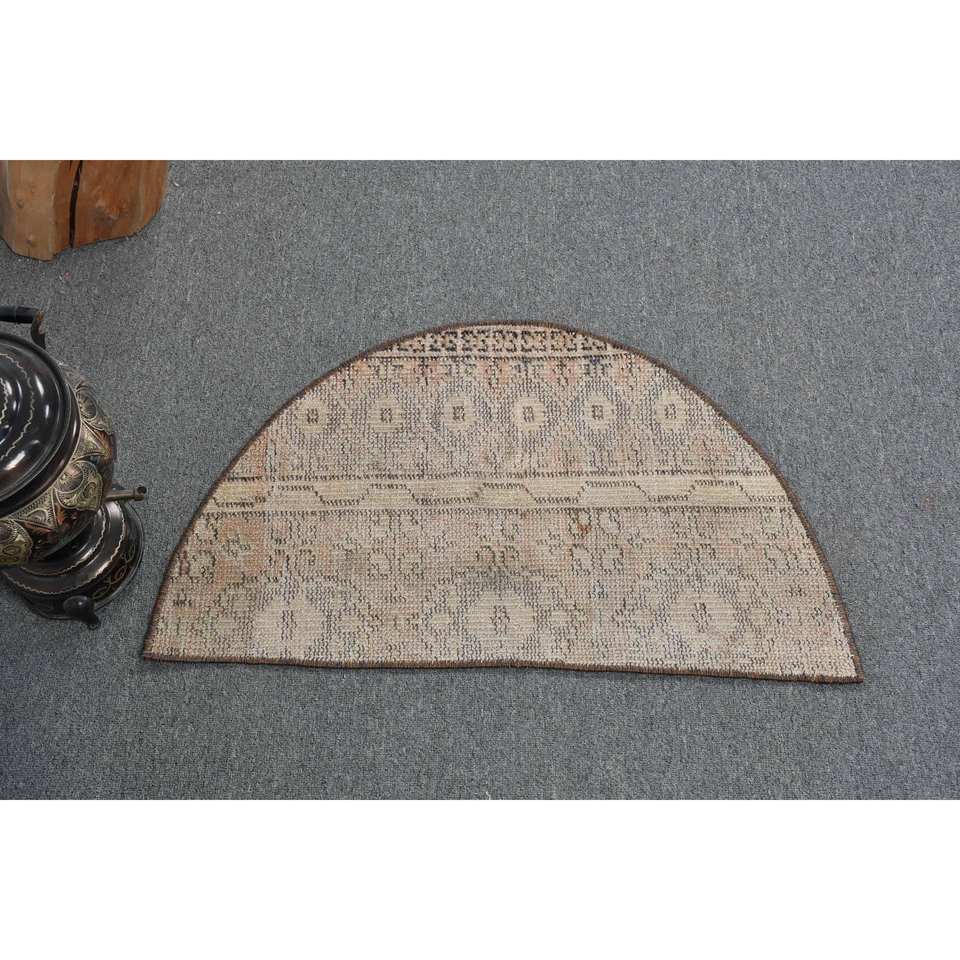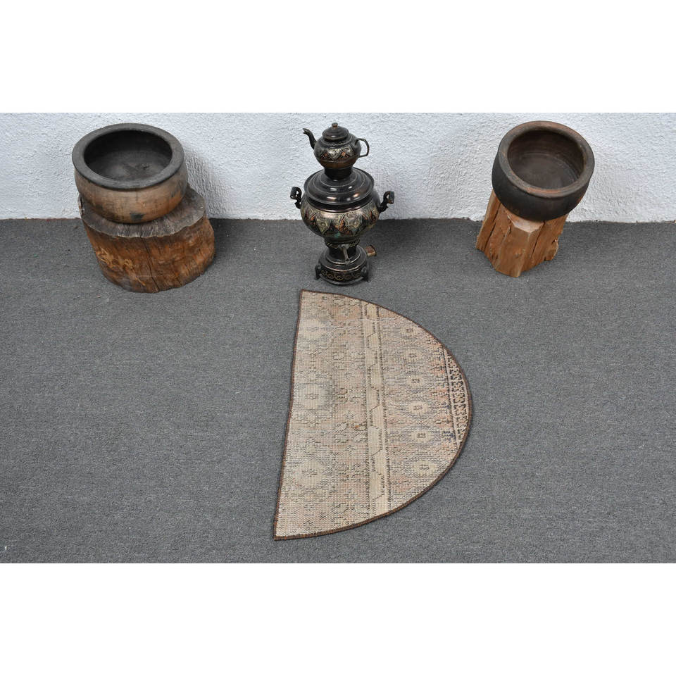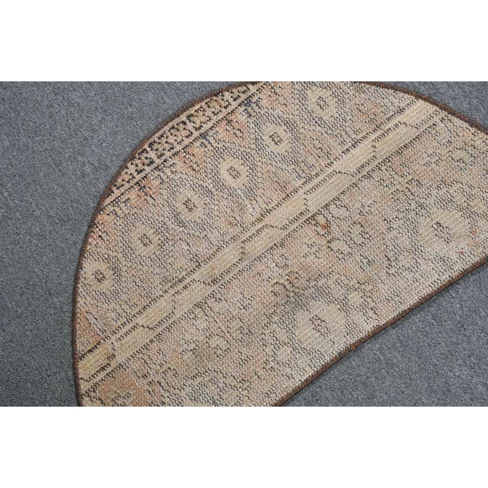 พรมขนสัตว์ตุรกีวินเทจ2.5ft x 1.5ft สีเบจคลาสสิกพื้นที่ขนาดใหญ่ที่มีรูปแบบนามธรรมสำหรับห้องโถงหรือห้องน้ำยางได้รับการสนับสนุน"