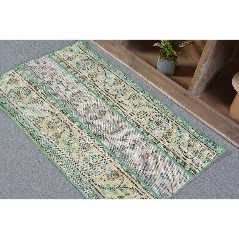 พรมขนสัตว์ตุรกีโบราณขนาด220x360ฟุตพรมห้องนั่งเล่นสีเขียวและสีเบจแบบเย็บปะติดปะต่อกันมีแผ่นยางรองหลังสำหรับวัยรุ่น