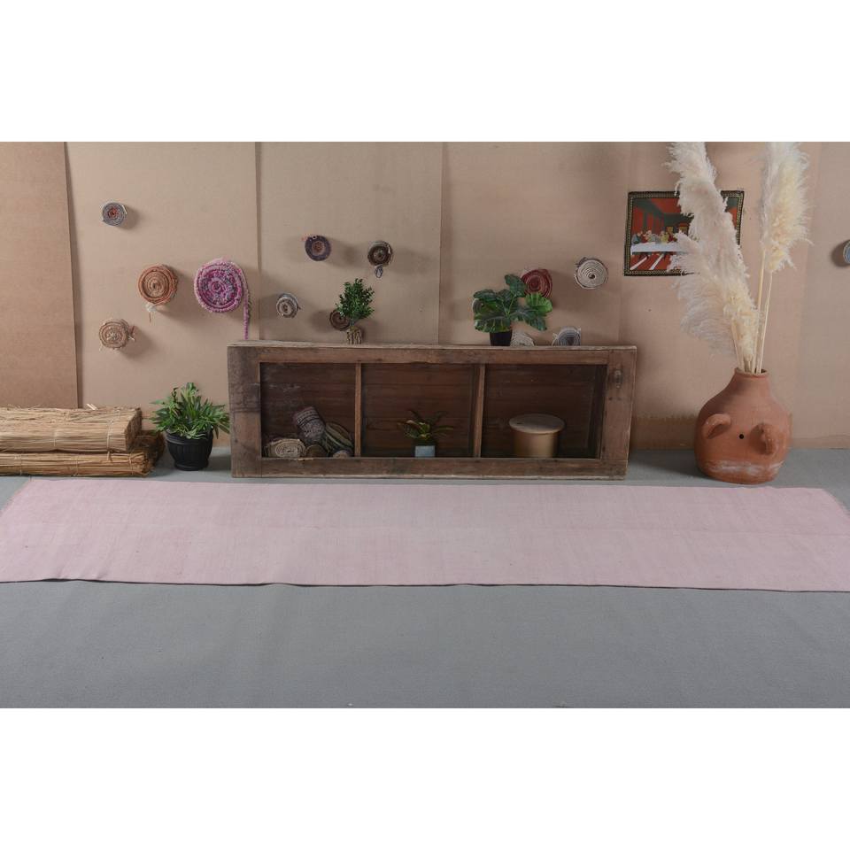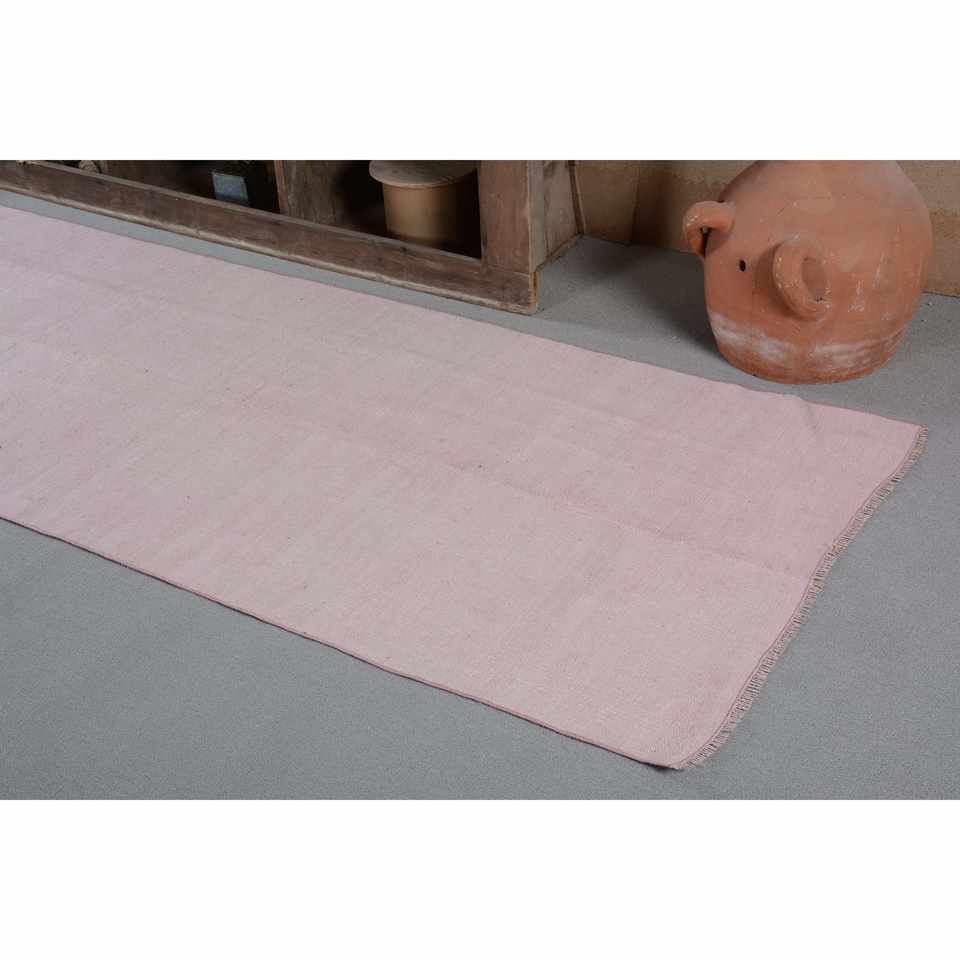 พรมขนแกะตุรกีวินเทจ33 x 11.7ft ทันสมัยสีชมพูแบนสานแบบเย็บปะติดปะต่อกันสำหรับตกแต่งห้องนั่งเล่นด้วยลาเท็กซ์