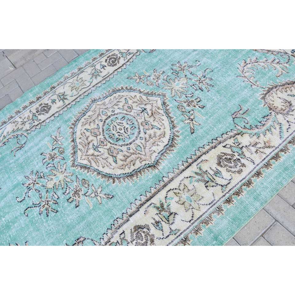 พรมขนแกะตุรกีวินเทจ5.5 x 8.7ft ฟ้าเทาโอเวอร์ไซส์ลาเท็กซ์ถักลายเรียบสำหรับตกแต่งห้องนั่งเล่น