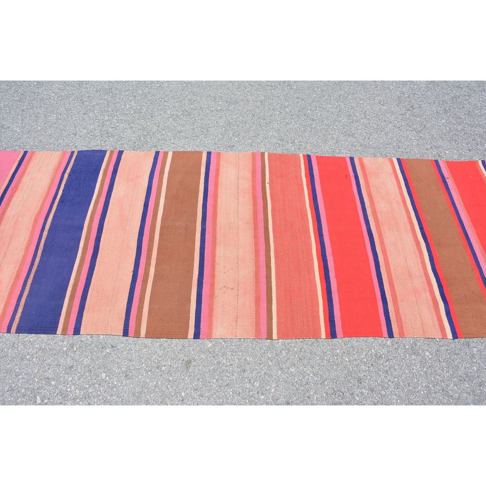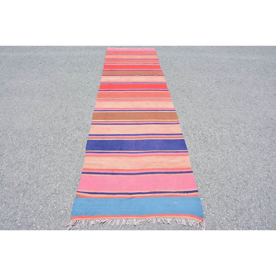 พรมขนแกะสไตล์ตุรกีวินเทจสีชมพูโอเวอร์ไซส์3นิ้ว x 11.4นิ้วงานปะติดแบบแบนสำหรับตกแต่งห้องนั่งเล่น