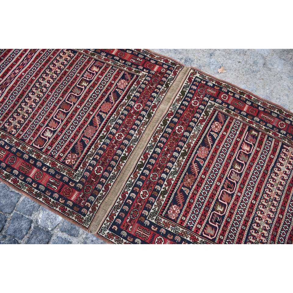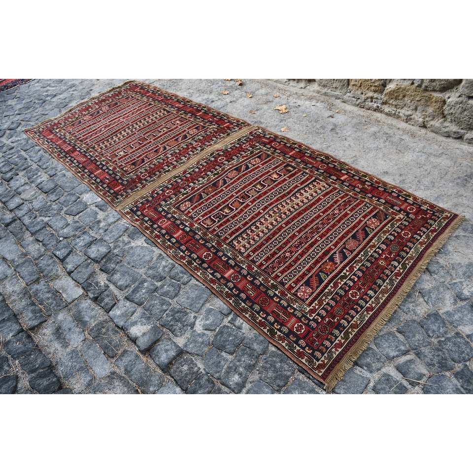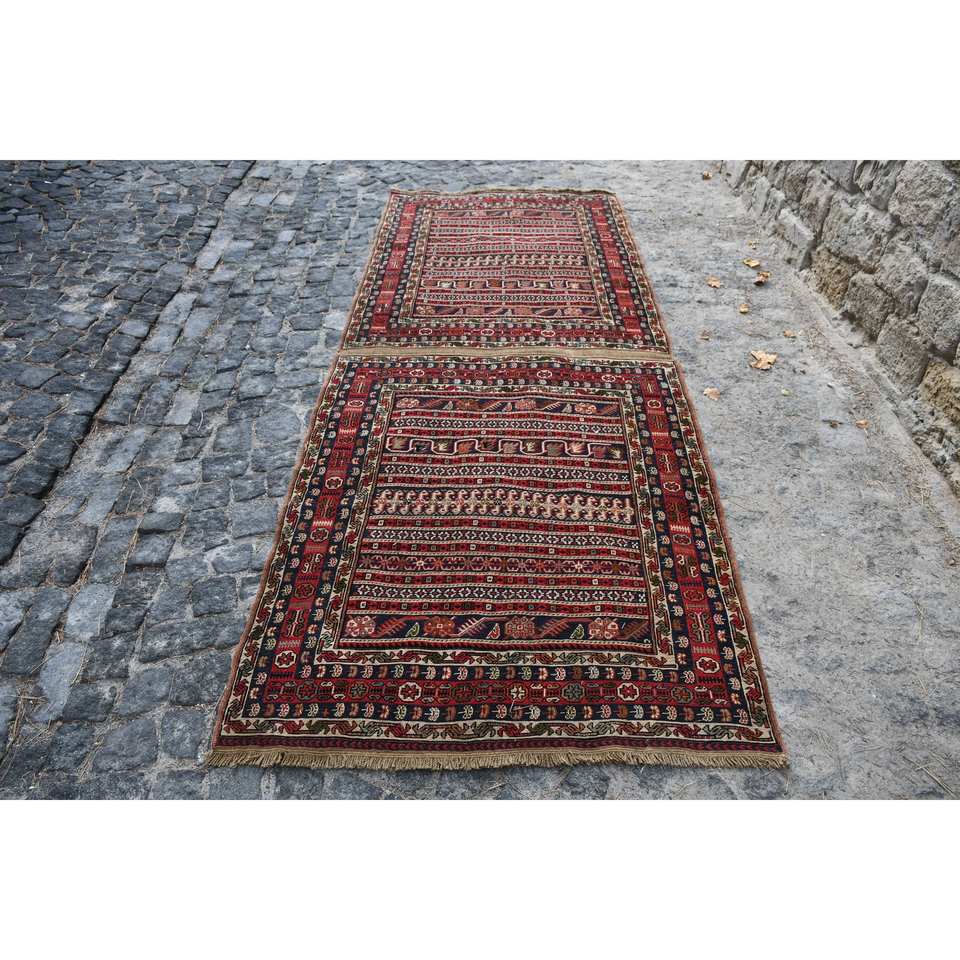 พรมขนแกะตุรกีวินเทจสีแดงสีดำโอเวอร์ไซส์แบบแบนด้านหลังเป็นยางรอง360X940ฟุตสำหรับตกแต่งห้องนั่งเล่นเย็บปะติดปะต่อกัน