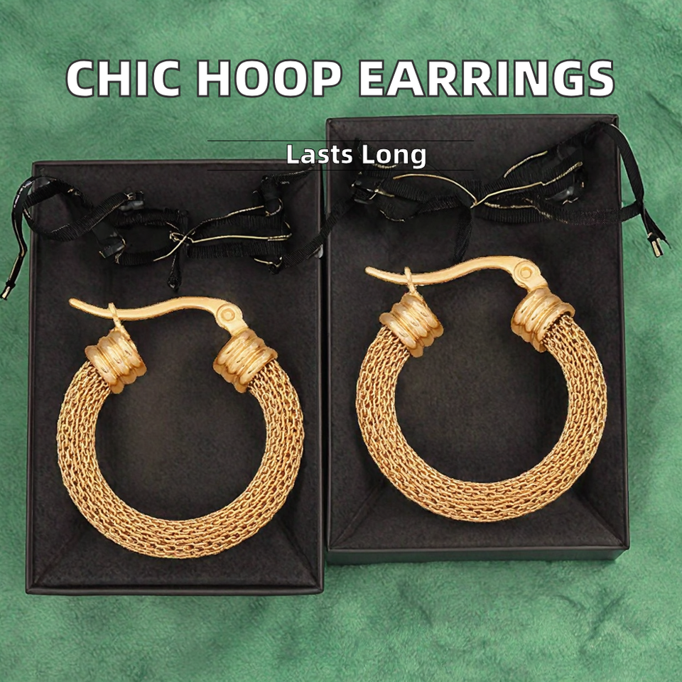 ต่างหูห่วงสแตนเลสสตีลแบบวินเทจสำหรับทุกเพศ ชุบทอง 18K กันน้ำ เหมาะสำหรับใส่ทุกวัน ประดับมุก ของขวัญวันครบรอบ ดีไซน์แบบ YJ Bezel Setting