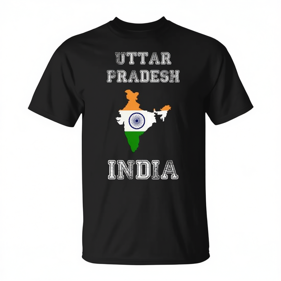 เสื้อยืดลายแผนที่อุตรพัฒนา ประเทศอินเดีย สไตล์วินเทจ งานแฮนด์เมด เสื้อผ้าส่งเสริมการขายจากอินเดีย