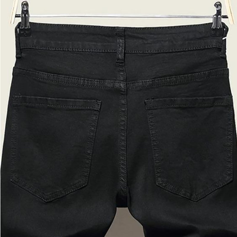 กางเกงยีนส์ผู้ชายขาดๆสไตล์วินเทจกางเกงยีนส์ขายาวเข้ารูปสีฟ้ากางเกงขายาวทรงตรงกางเกงขายาวลำลอง