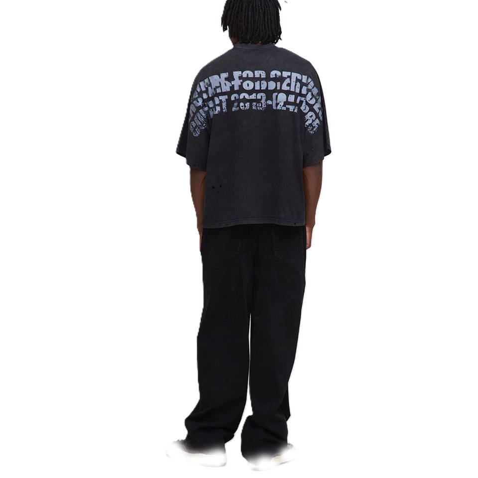 เสื้อยืดผู้ชายลายกราฟิกวินเทจ ทรงโอเวอร์ไซส์ ผ้าคอตตอนหนา สตรีทแวร์ ผลิตจำนวนมากแบบ Private Label