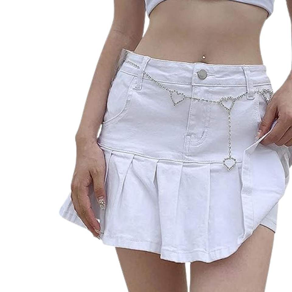 กระโปรงยีนส์สั้นทรงพลีทเอวสูงสไตล์วินเทจ Y2K แฟชั่นสตรีทแวร์ ระบายอากาศได้ดี