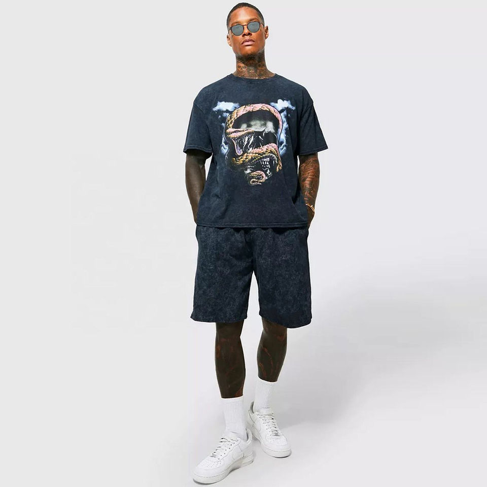 เสื้อยืดลำลองผู้ชายโอเวอร์ไซส์ผ้าคอตตอน100% กราฟิกซีดและดีไซน์พิมพ์ลายสีดำแขนสั้น