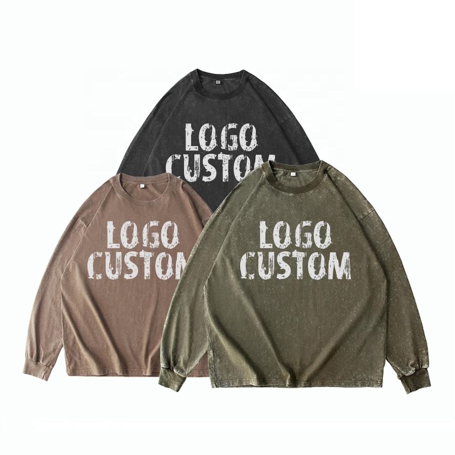 เสื้อยืดแขนยาวสำหรับผู้ชายเสื้อยืดผ้าฝ้ายพิมพ์ลายกราฟิก DTG โอเวอร์ไซส์ล้างออกได้แบบกำหนดเอง
