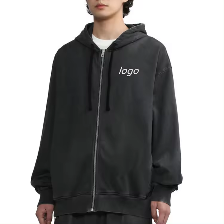 เสื้อมีฮู้ดซิปฟอกสไตล์วินเทจโอเวอร์ไซส์ซิปมีฮู้ดผ้าเฟรนช์เทอร์รี่400ก. สำหรับการจัดส่งสินค้า