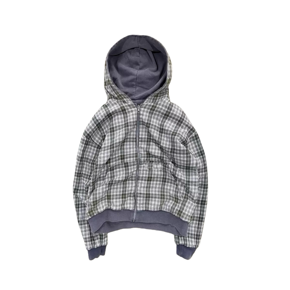 เสื้อฮู้ดวินเทจแบบย้อนยุค ผ้าฝ้าย 100% ทรงโอเวอร์ไซส์ ลายสก็อต ปักลาย ใส่ได้สองด้าน เหมาะสำหรับฤดูหนาว