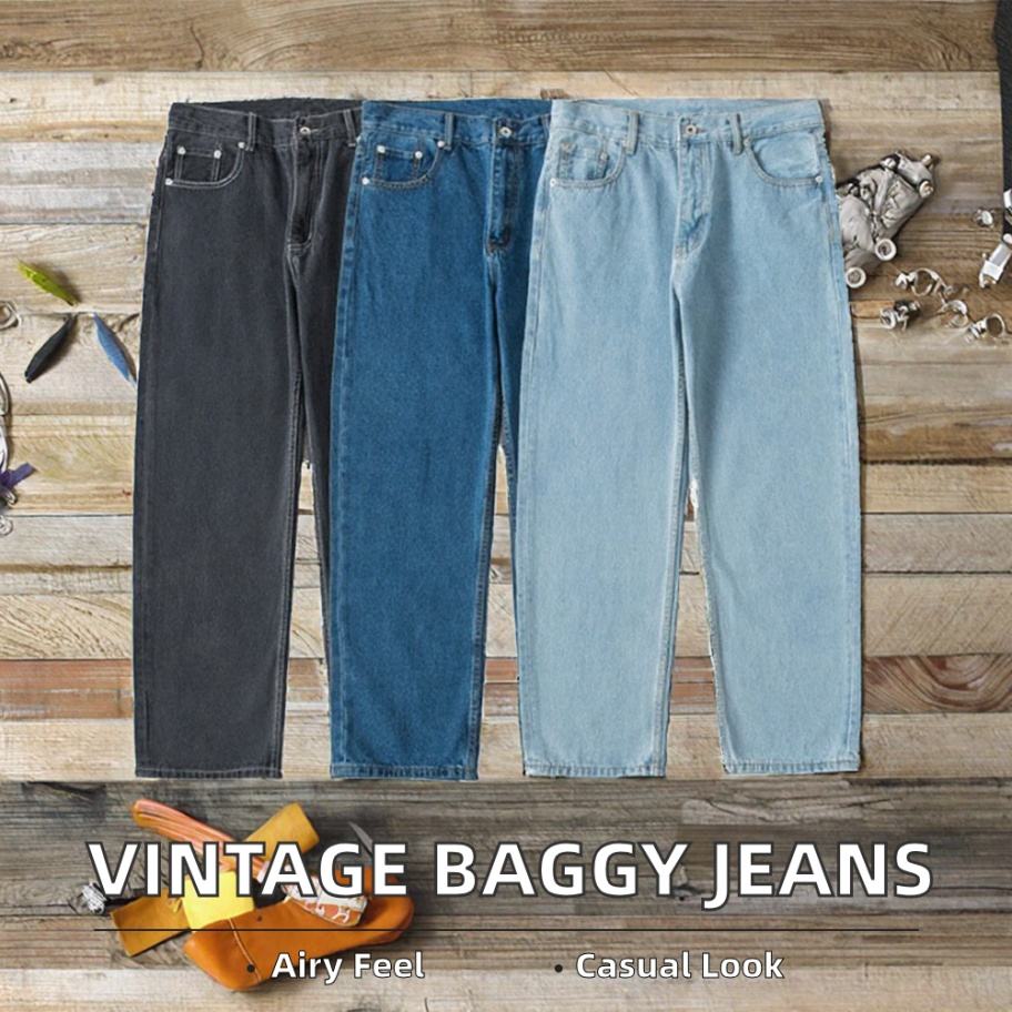 กางเกงยีนส์ทรงตรงสไตล์วินเทจแบบสโตนวอชสำหรับผู้ชาย ขายส่ง สไตล์สตรีทแวร์ลำลอง เอวกลาง ระบายอากาศได้ดี เหมาะสำหรับฤดูใบไม้ผลิและฤดูใบไม้ร่วง