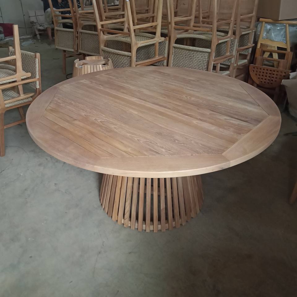 โต๊ะกลางแจ้งทรงกลมไม้สักวินเทจ 130 ซม