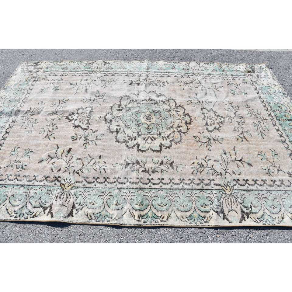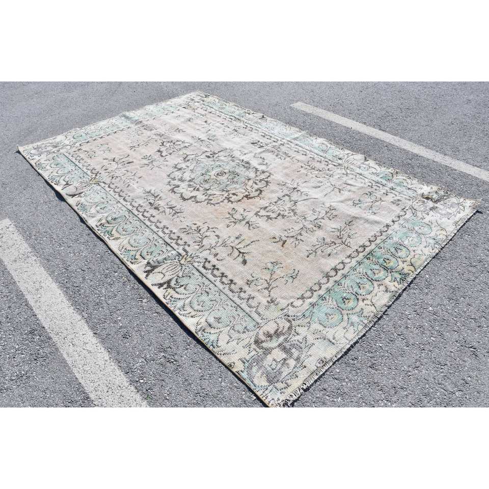 พรมขนสัตว์สีเขียววินเทจสีขาวขนาด5.9x9ฟุตแบบตุรกีพรมสานแบบเย็บปะติดปะต่อกันตกแต่งห้องนั่งเล่นพร้อมแผ่นรองทำจากยาง