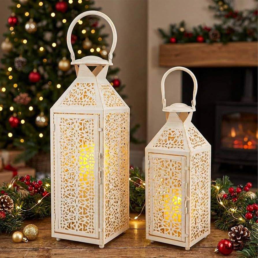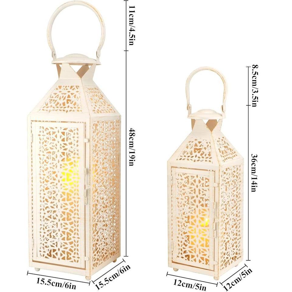 ชุดโคมไฟโมร็อกโกสีขาววินเทจ 2 ชิ้น ทนทาน เป็นมิตรกับสิ่งแวดล้อม วัสดุสั่งทำพิเศษ โคมไฟแขวนตกแต่งบ้าน