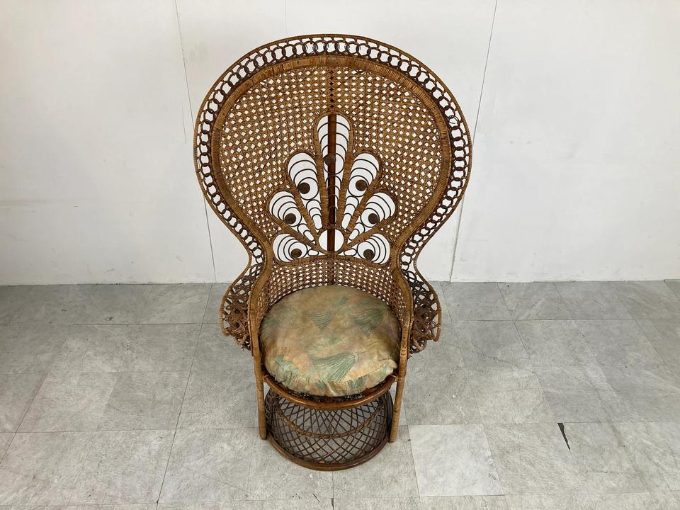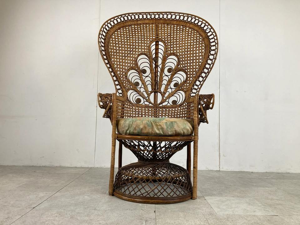 วินเทจหวายนกยูงเก้าอี้กลางศตวรรษที่ทันสมัยเลานจ์เก้าอี้เก้าอี้หวายจากเวียดนาม