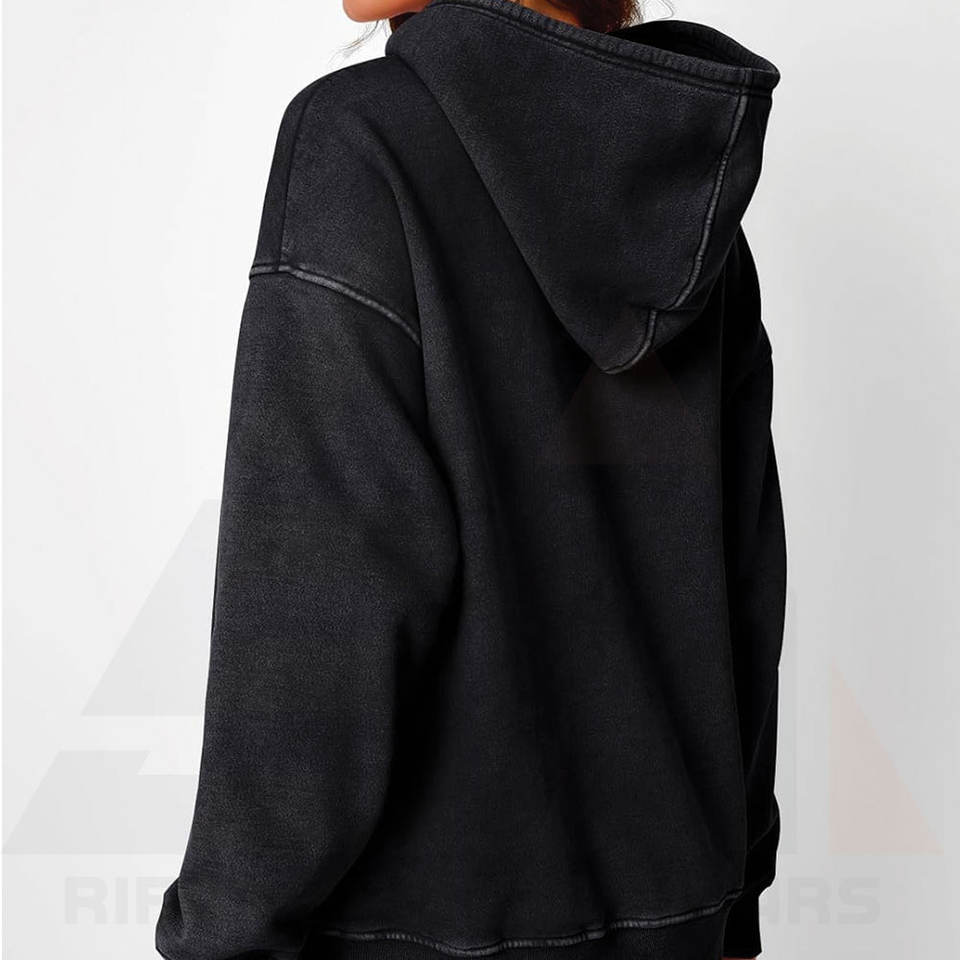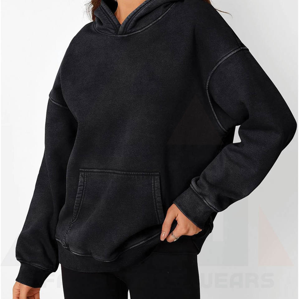 เสื้อฮู้ดโอเวอร์ไซส์สไตล์วินเทจสำหรับผู้หญิง ลวดลายฟอกสีแบบแอซิดวอช ดีไซน์สั่งทำ รุ่นใหม่ล่าสุด