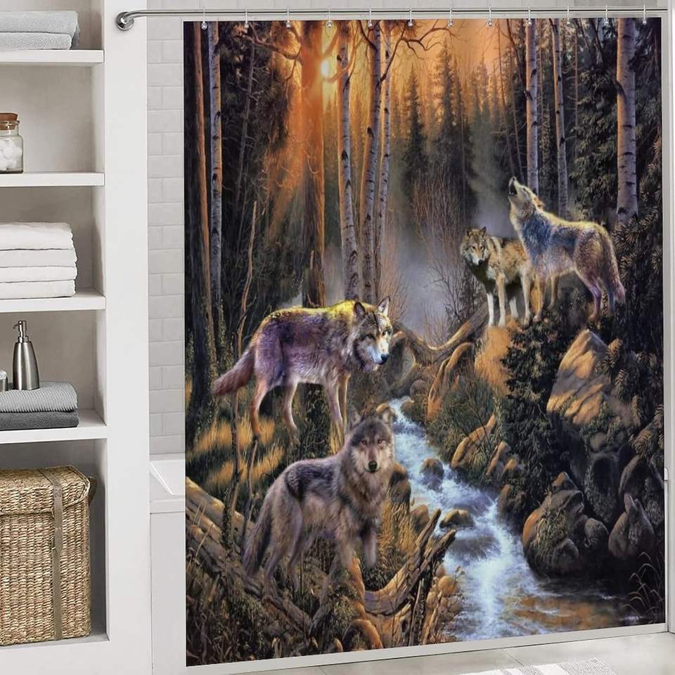 Vintage Wolf 4-Piece Non-Slip Bathroom Accessory Set Durable Waterproof Toilet Lid Cover & Bath Mat for Home Decor or Hotels