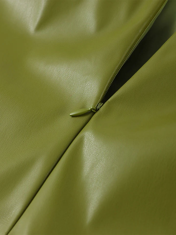 กระโปรงหนังวินเทจทรงยาวสำหรับผู้หญิง ดีไซน์เรียบหรู ซิปหน้า ช่วยพรางหุ่น กระชับสะโพก สไตล์เก๋ไก๋ทันสมัย เหมาะสำหรับใส่เดินเล่นในเมือง