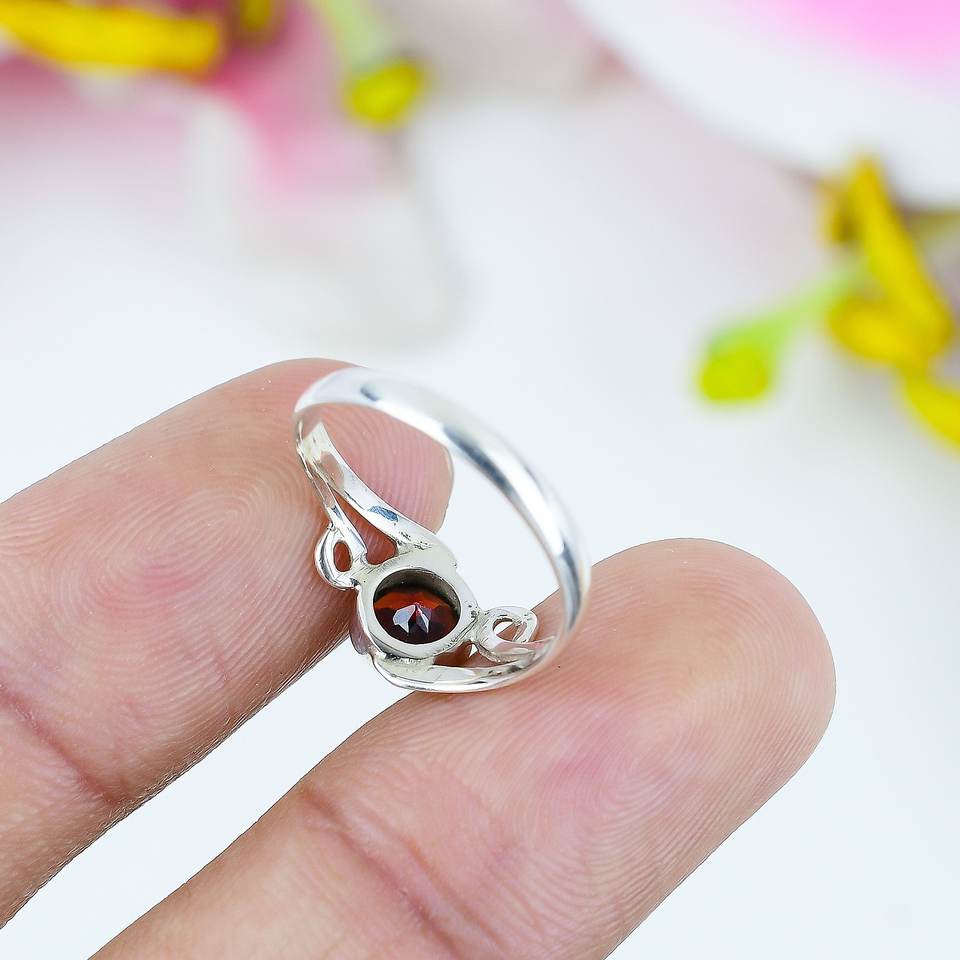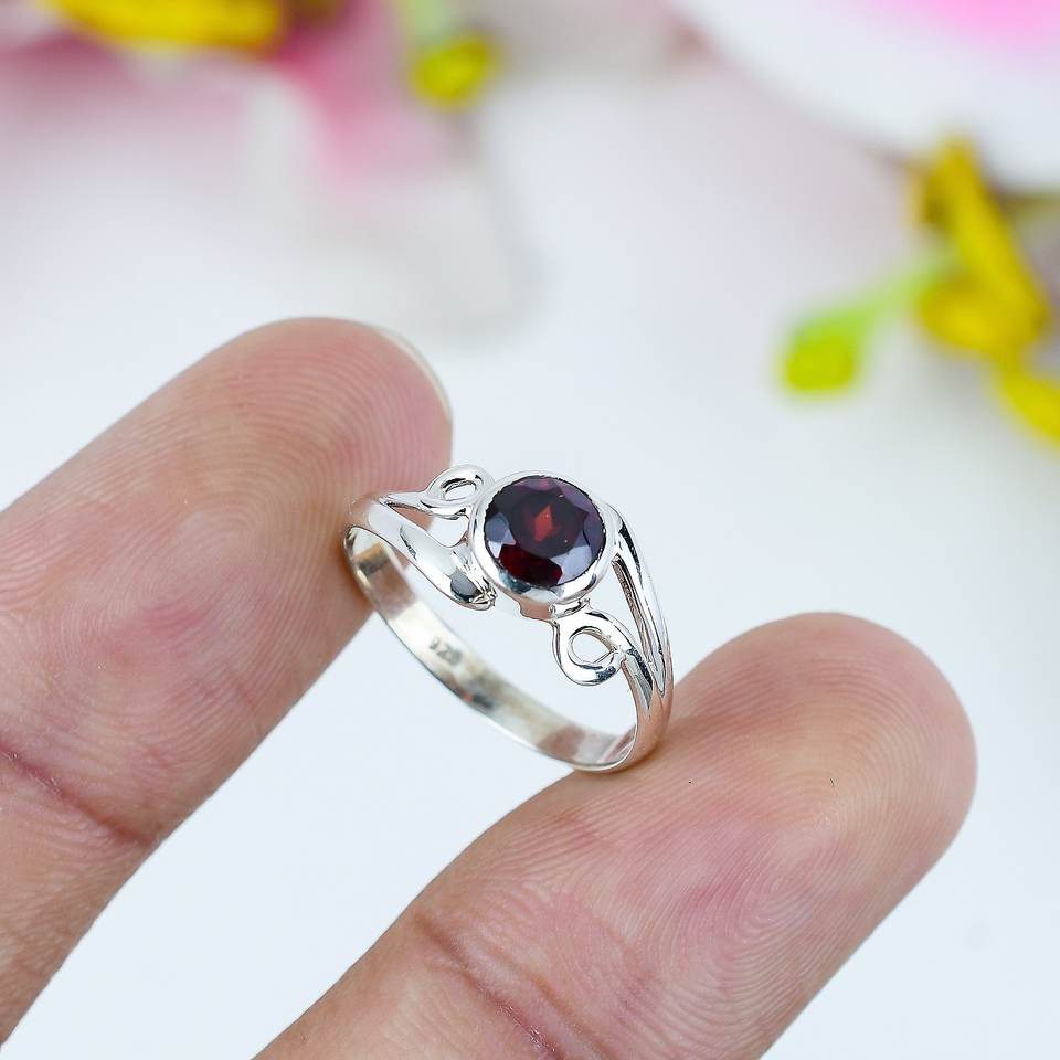 แหวนเงินแท้ประดับเพทายทรงกลมสีแดงเข้ม ดีไซน์ลายเส้นงดงาม เหมาะสำหรับงานแต่งงานและงานเลี้ยงสำหรับผู้หญิง