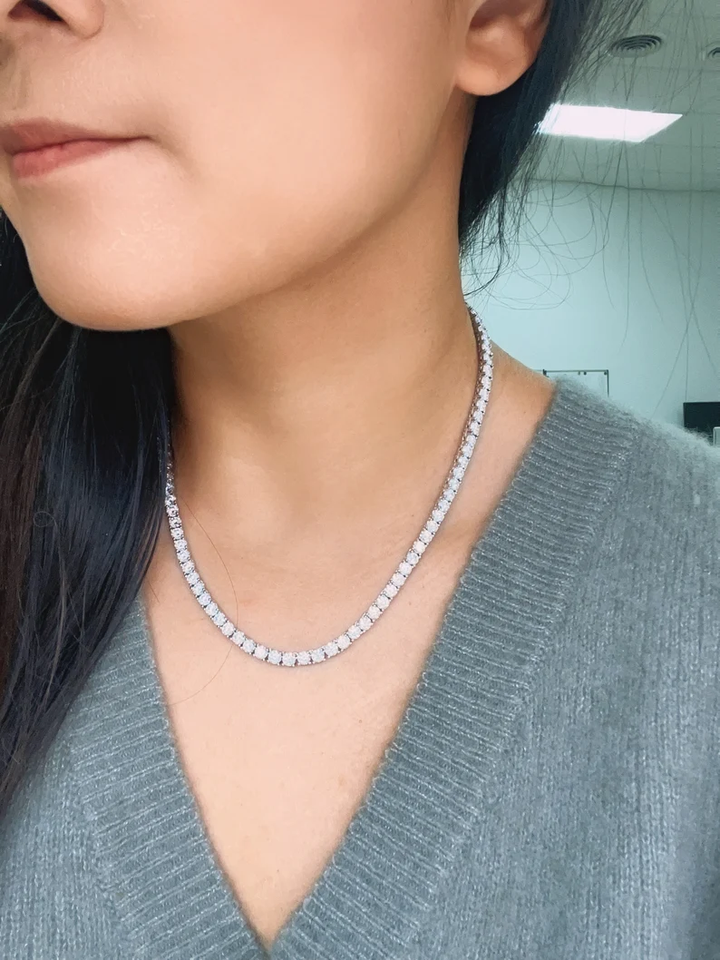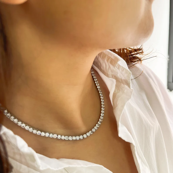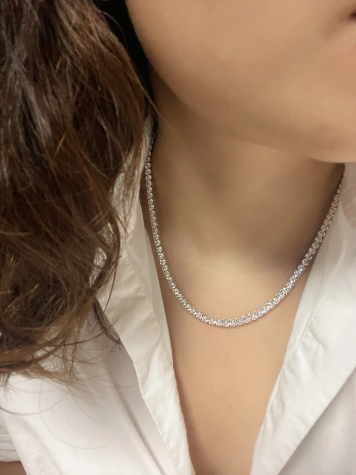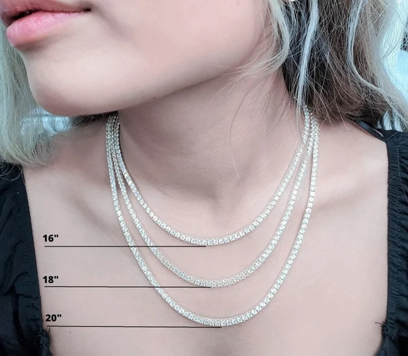 สร้อยคอเทนนิสผู้หญิงวินเทจสีเงินโมอิส925อิสซาไนท์ขนาด4มม. ประดับเพชรมีความปลอดภัยสำหรับงานปาร์ตี้สแตนเลส