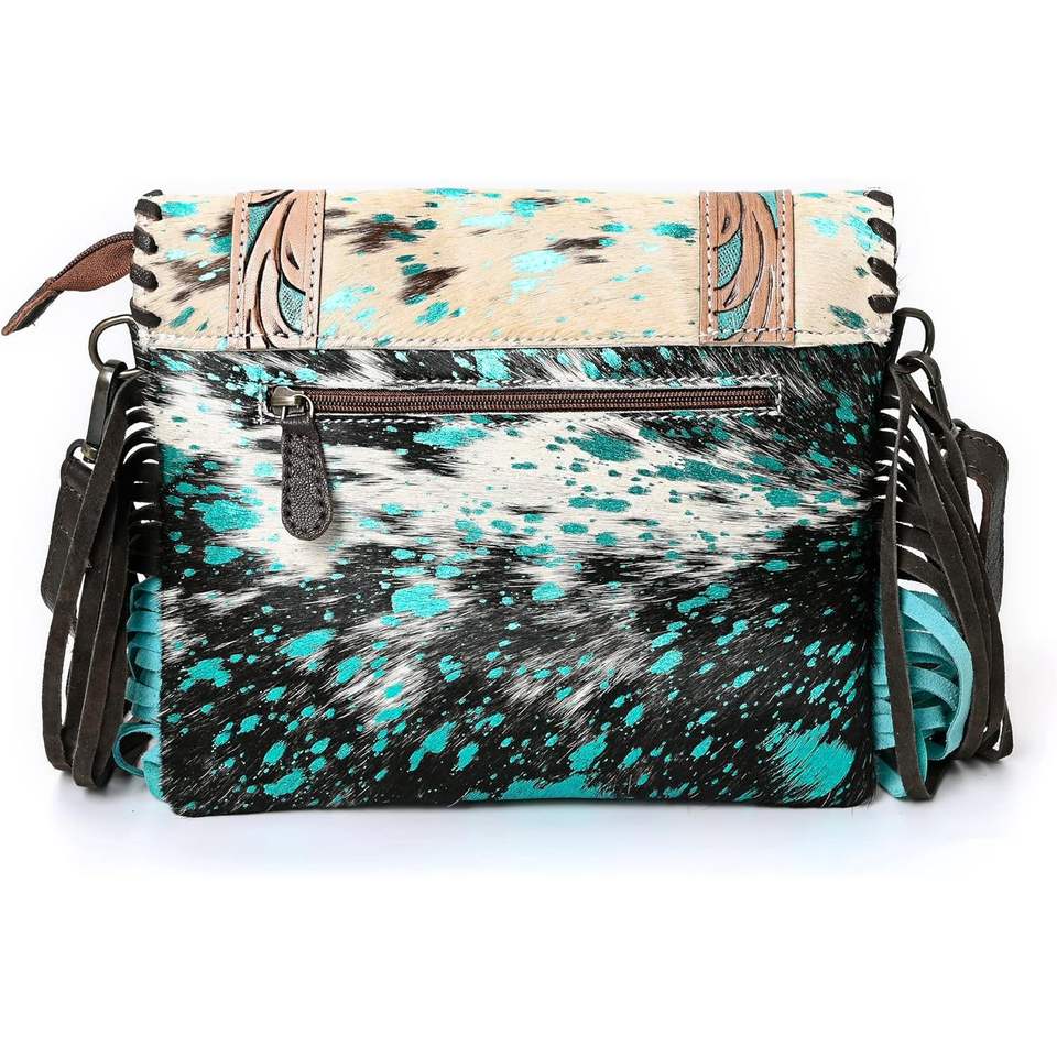 กระเป๋าสะพายข้างหนังวัวแท้สำหรับผู้หญิงวินเทจกระเป๋าสะพายไหล่ทรงอานม้าสีเทอร์ควอยซ์ซินโชลวดลายเรขาคณิตเพรพพี้โบฮีเมียน