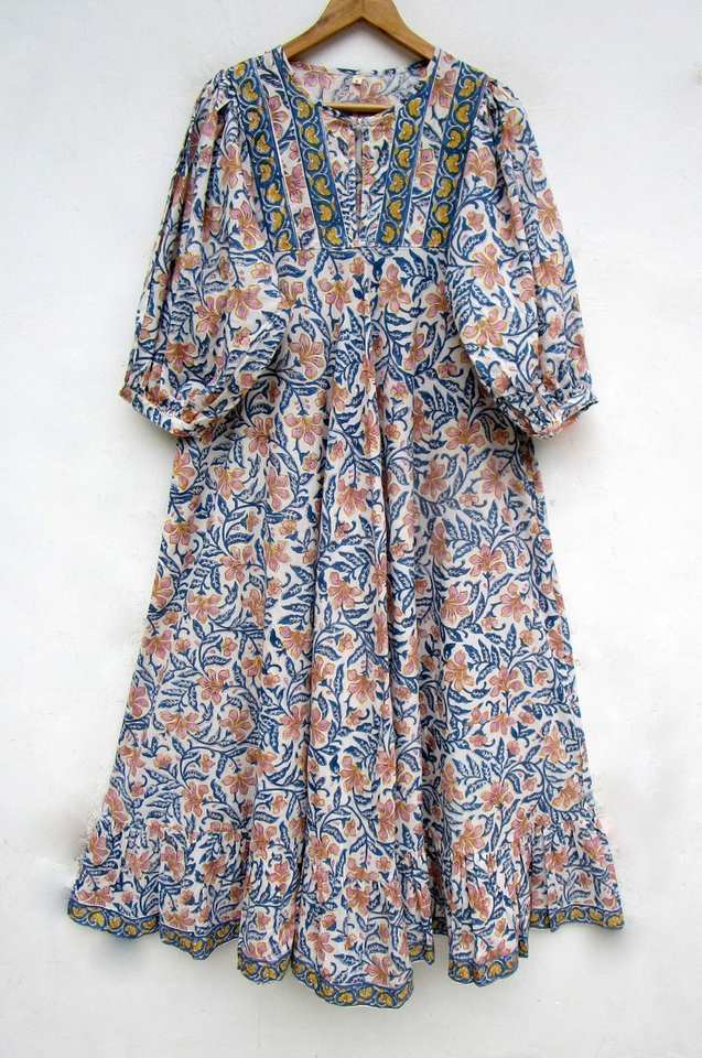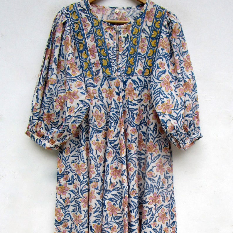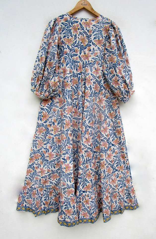 ชุดเดรสลำลองยาวถึงเข่าพิมพ์ลายดอกไม้แขนกุดเอวธรรมชาติของผู้หญิงวินเทจ100% ผ้าฝ้ายซักได้