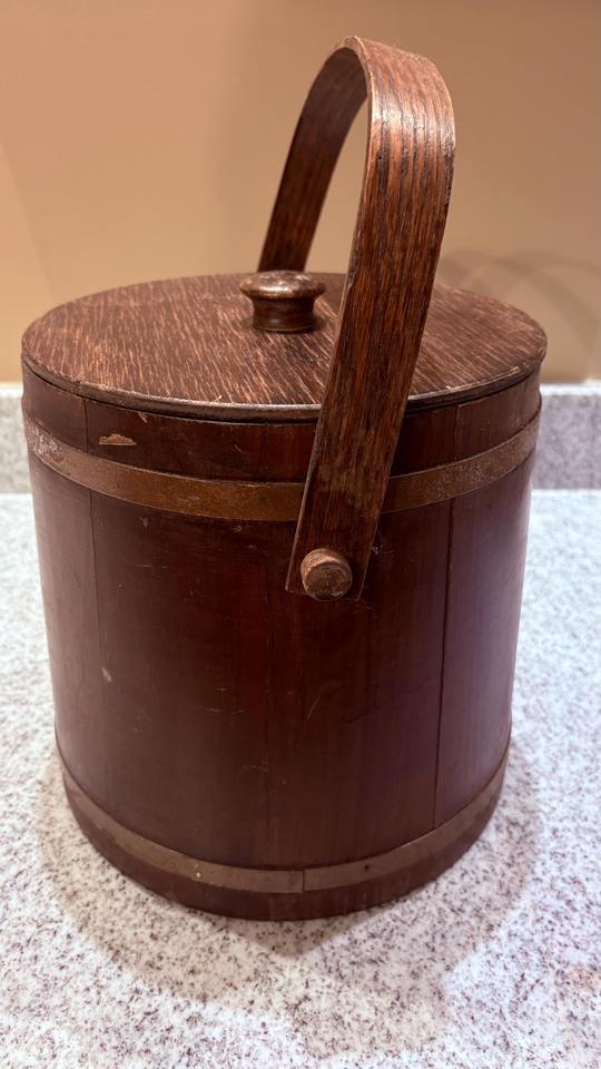 ถังน้ำแข็งไม้สไตล์วินเทจพร้อมฝาปิดและหูจับโลหะ เหมาะสำหรับตกแต่งบาร์ที่บ้าน จัดงานปาร์ตี้ และตกแต่งโต๊ะสไตล์เรโทร จากอินเดีย