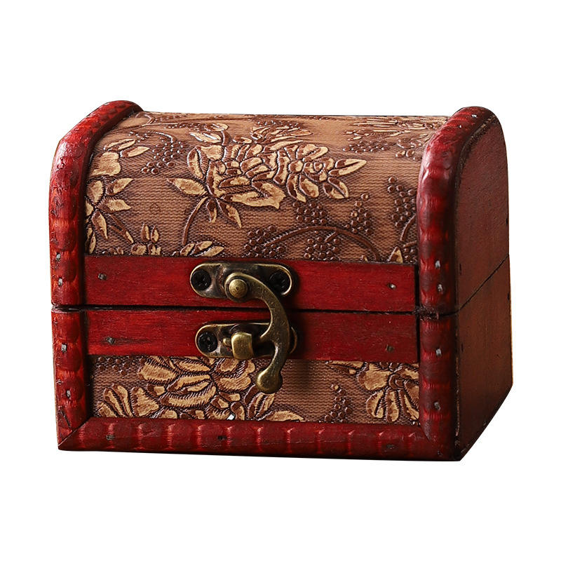 กล่องใส่เครื่องประดับไม้สไตล์วินเทจ สีแดง กล่องเก็บของตกแต่งพร้อมฝาเปิดแบบพลิก สำหรับใช้ในบ้าน ของขวัญงานแต่งงาน บรรจุภัณฑ์ ของตกแต่ง