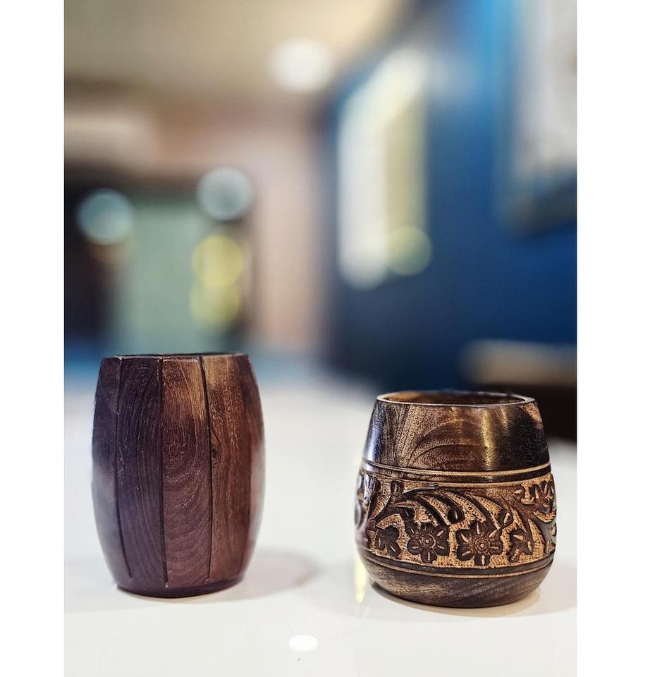 Vintage Wooden Pen & Pencil Holder Rustic Multi-Compartment Desk Organizer for Office, Study Table