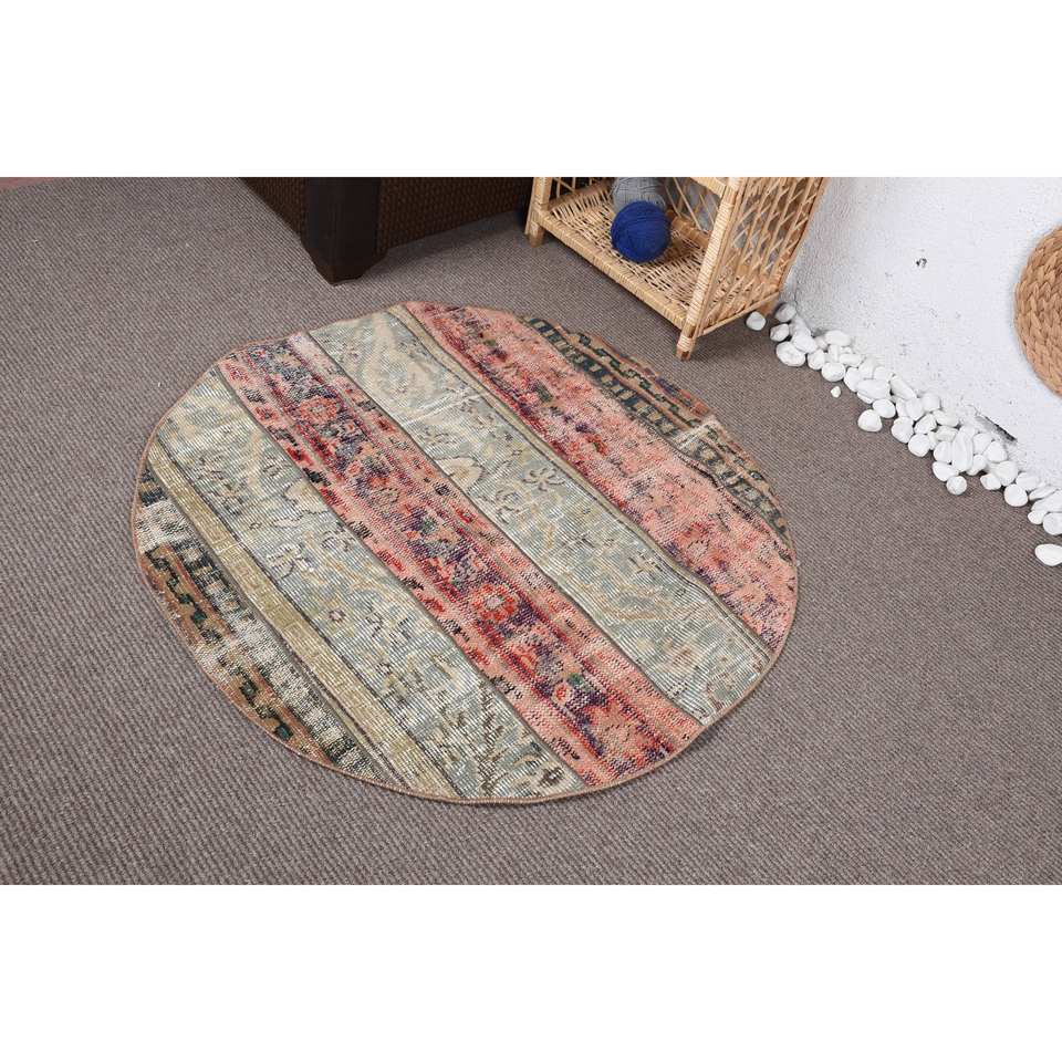 พรมขนแกะสีเบจแบบวินเทจขนาด3.6x3.6ฟุตดีไซน์แบบแอบสแตรกต์ทรงสี่เหลี่ยมผืนผ้าสำหรับห้องนอนห้องนั่งเล่นแผ่นรองทำจากยาง