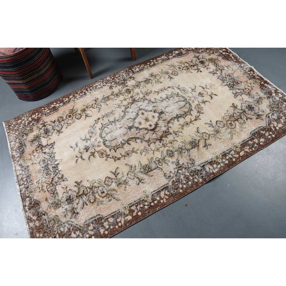 พรมปูพื้นขนแกะวินเทจ6.3ft 3.8 x ทรงสี่เหลี่ยมผืนผ้าดีไซน์คลาสสิกสีเบจสีน้ำตาลอมเหลืองสำหรับตกแต่ง