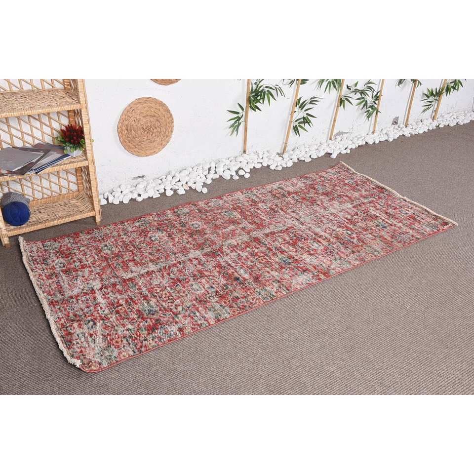 พรมขนแกะวินเทจสีแดงขนาด3.2x7.3ฟุตพื้นที่ขนาดใหญ่รูปสี่เหลี่ยมผืนผ้าโถงทางเดินหนา10มม. สำหรับด้านหลังยางข้างเตียง