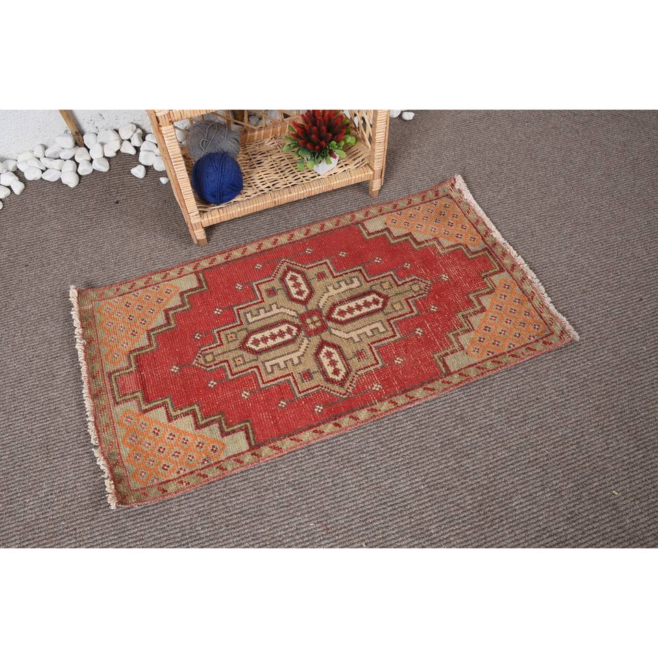 พรมขนสัตว์วินเทจขนาด1.8x3.3ฟุตสีแดงและสีเบจแบบปะต่อดีไซน์นามธรรมสำหรับห้องนั่งเล่นทางเข้าหรือในบ้านทำจากยาง