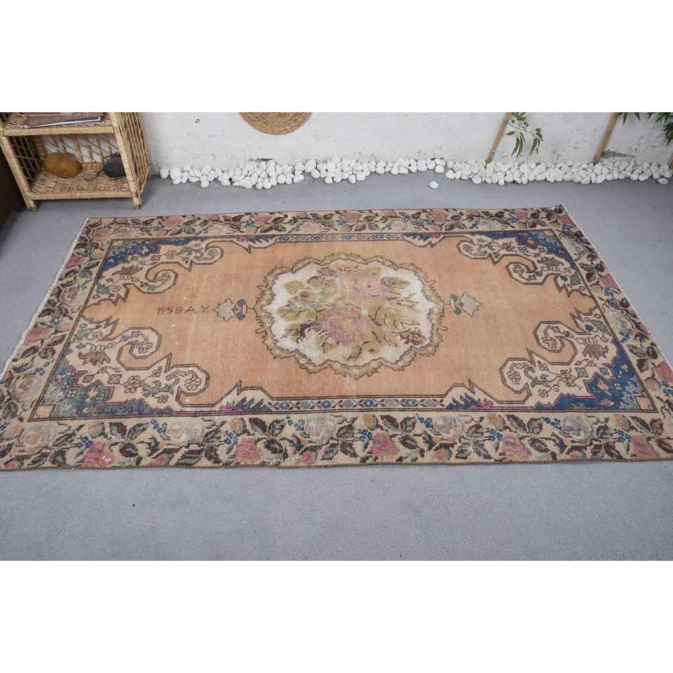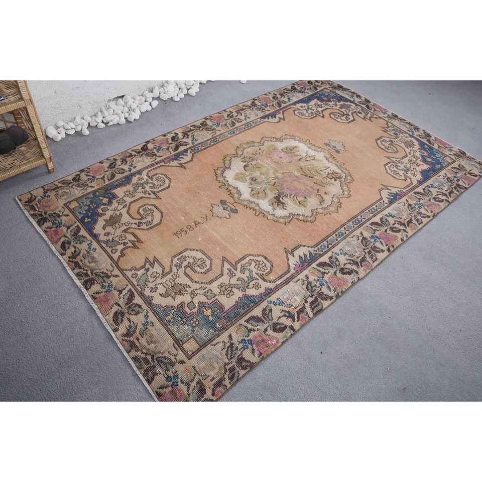 พรมขนสัตว์แนววินเทจสีส้มสีฟ้า44 x 71ft (134x217ซม.) พรมปอกระเจาลายแอบสแตรกต์ยางรองทรงสี่เหลี่ยมผืนผ้าขนาด10มม.