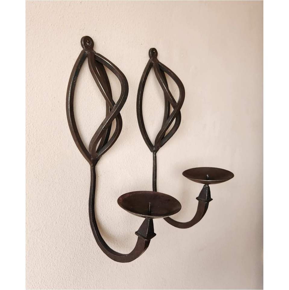 เชิงเทียนติดผนังเหล็กดัดวินเทจ ที่วางเทียนโลหะแบบเสา สีดำโบราณ แบบสองหัว สำหรับตกแต่งบ้าน ตกแต่งงานแต่งงาน