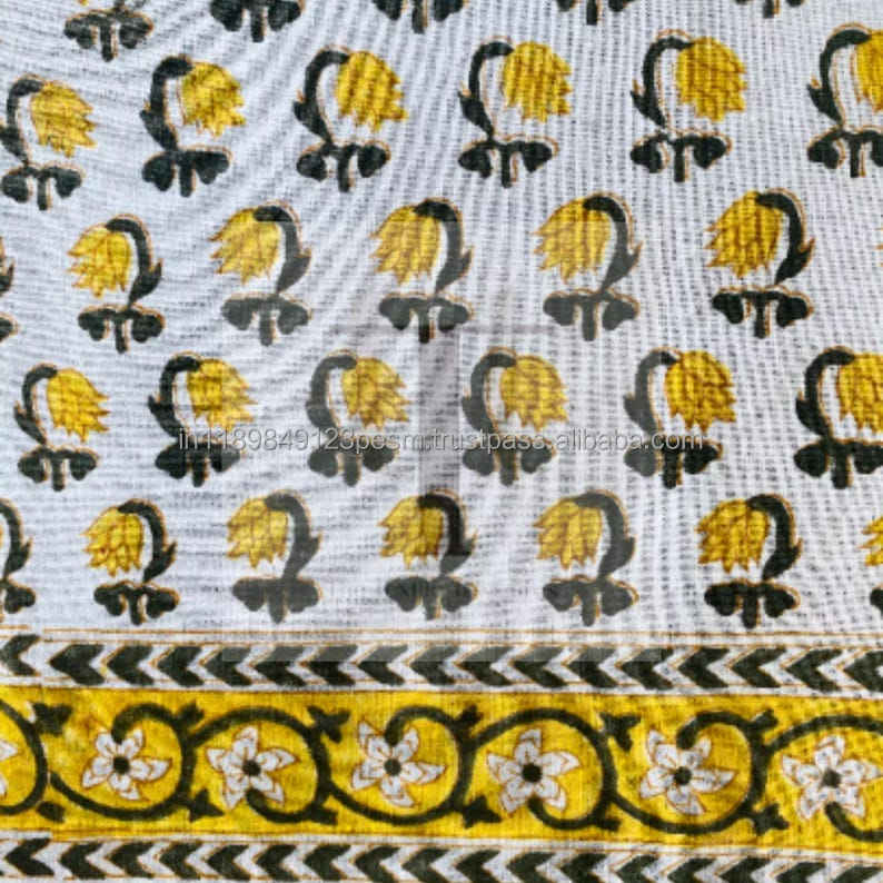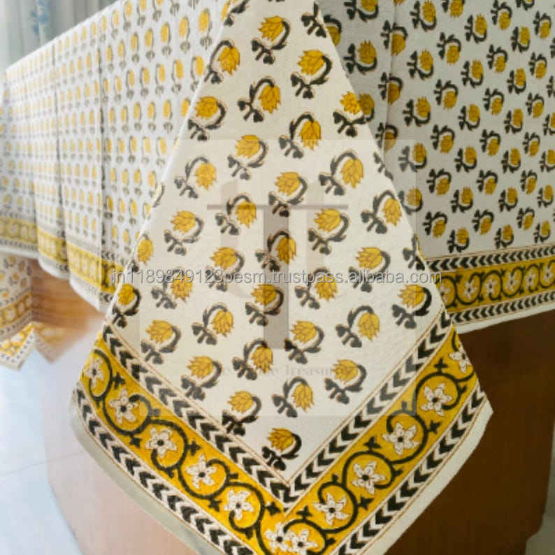 ผ้าคลุมโต๊ะลายดอกไม้วินเทจผ้าคอตตอนพิมพ์ลายดอกไม้สีเหลืองสไตล์คันทรี่ฝรั่งเศสอินเดียสำหรับดินเนอร์งานแต่งงานที่บ้าน