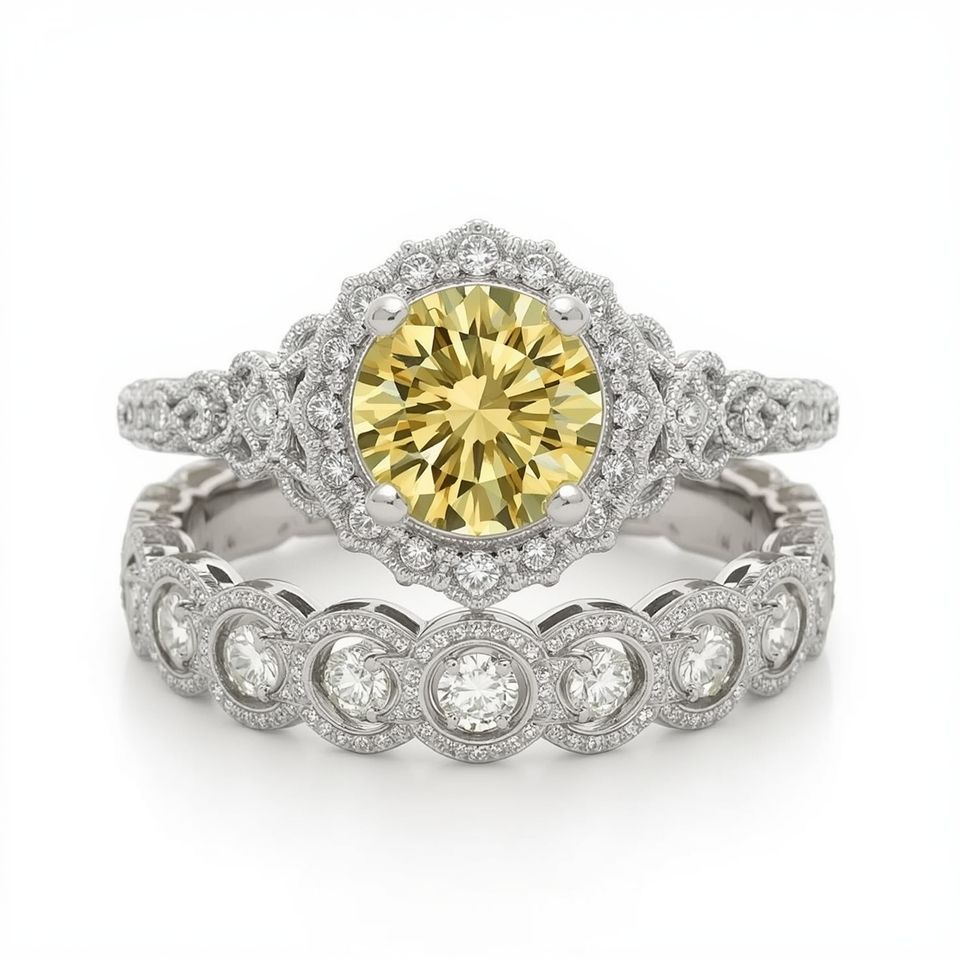 แหวนหมั้นหรูหราประดับพลอยสีเหลืองวินเทจ ฝังในทองคำแท้ 9K | เครื่องประดับเจ้าสาวแบบกำหนดเองสำหรับงานแต่งงานและงานเลี้ยง