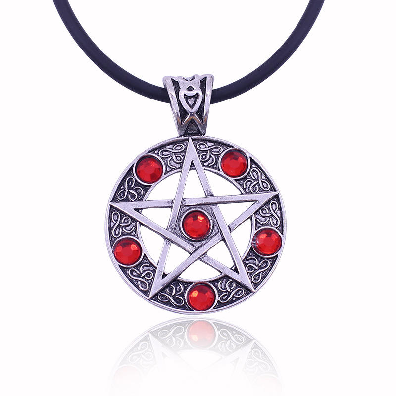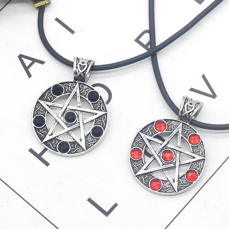 สร้อยคอโลหะผสมสังกะสีโบราณรูปดาวห้าแฉก,สร้อยคอรูปห้าเหลี่ยมแกะสลักสัญลักษณ์ซาตานอัญมณี