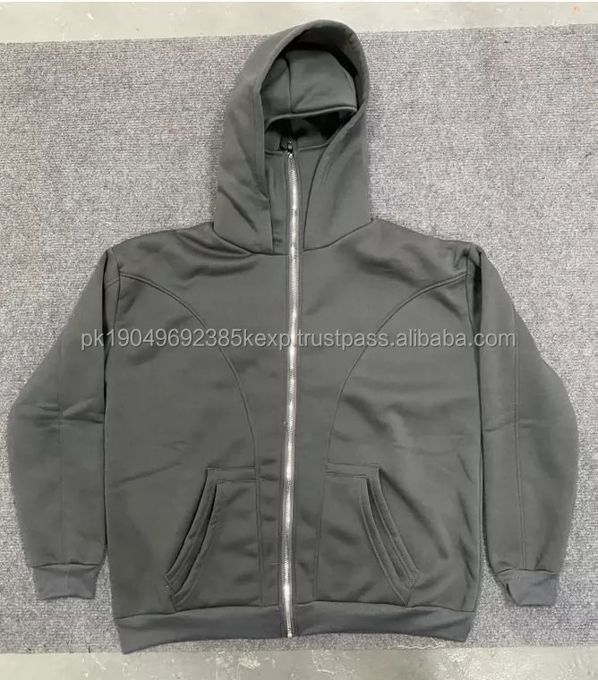 เสื้อฮู้ดสไตล์วินเทจแบบมีซิปคลุมหน้า ดีไซน์กันหนาว ทรงโอเวอร์ไซส์ สไตล์โกธิค ล้างสีแบบ Acid Wash สำหรับผู้ชายและผู้หญิง