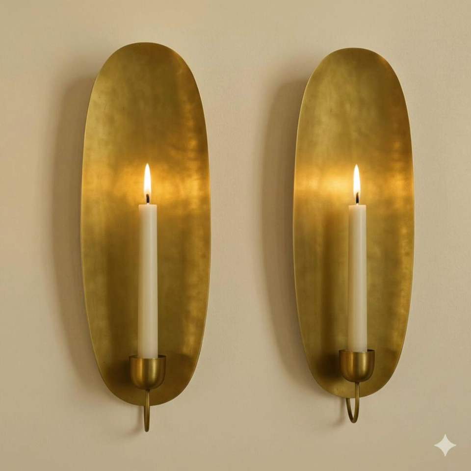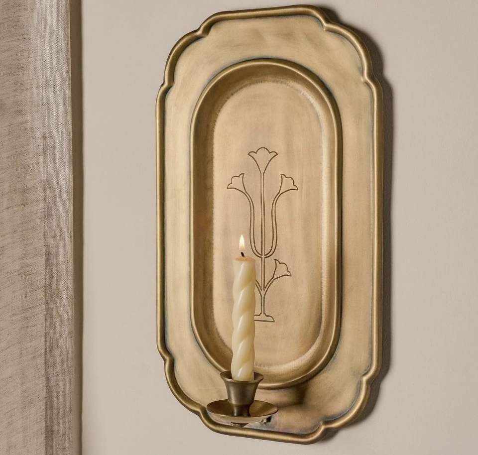 เชิงเทียนติดผนังทองเหลืองสไตล์วินเทจที่วางเทียนทองเหลืองที่ทำด้วยมือเชิงเทียนทองเหลืองหรูหรา