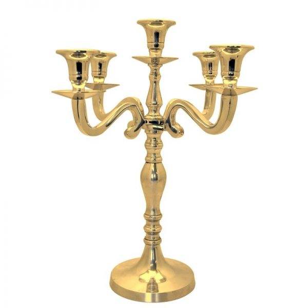 เชิงเทียนโลหะดูทองเหลืองโบราณสำหรับการตกแต่งบ้านในรูปแบบดั้งเดิมและการออกแบบโต๊ะอาหารค่ำด้วยแสงเทียนรอยัล