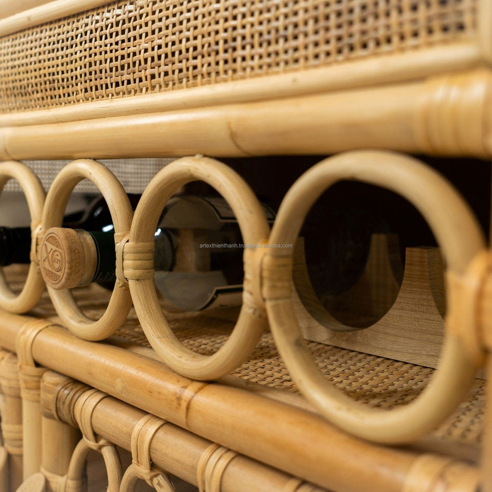 รถเข็นบาร์หวายโบราณคลาสสิกวินเทจ,สำหรับดื่มไวน์และขวดพิเศษรถเข็นบาร์หวายแฮนด์เมดในเวียดนาม