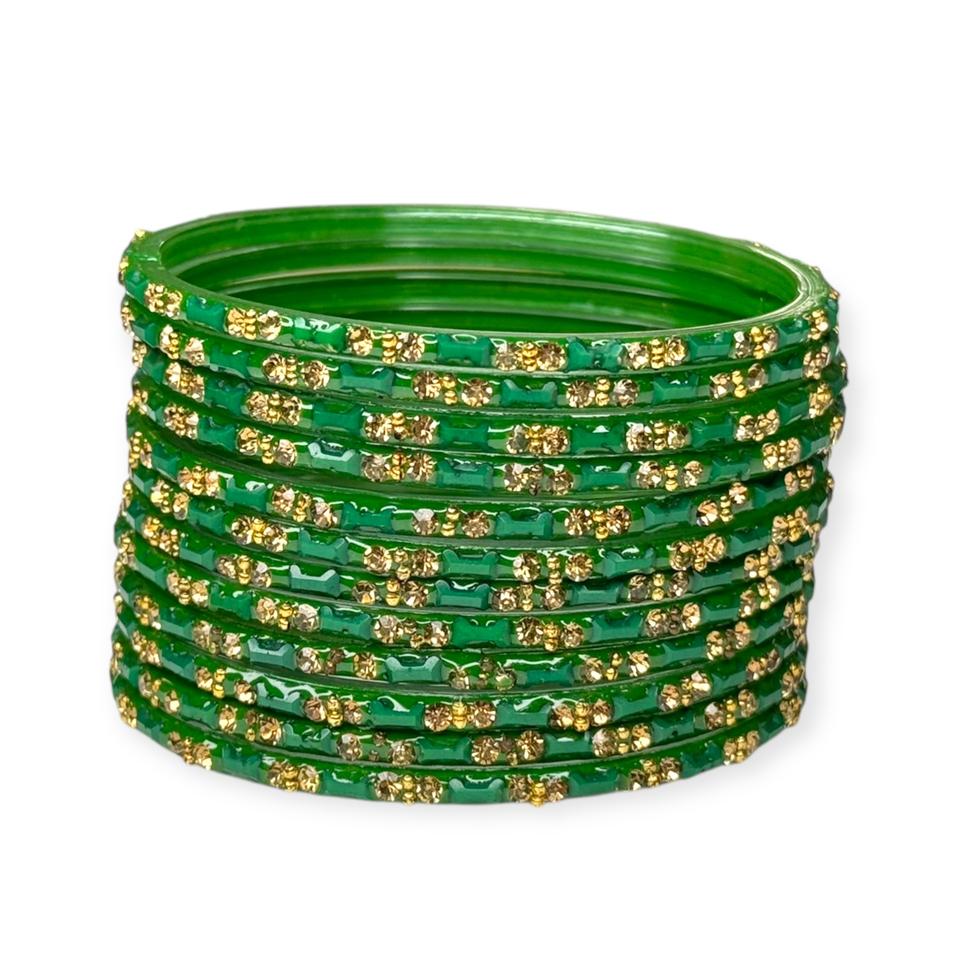 กำไลข้อมือแก้วสีเขียวสไตล์วินเทจลายมุกชุบทองทันสมัยสำหรับงานแต่งงานสำหรับผู้หญิง
