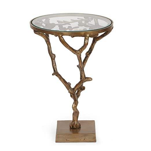 โต๊ะกาแฟอลูมิเนียมลายดอกไม้วินเทจพร้อมฐานเงางามและกระจกทนทานเหมาะสำหรับการจัดแสดงและใช้ในชีวิตประจำวัน