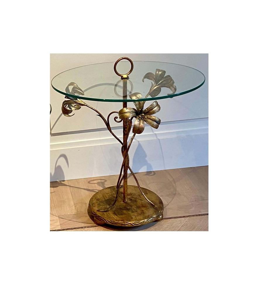 โต๊ะกาแฟอลูมิเนียมลายดอกไม้วินเทจพร้อมฐานเงางามและกระจกทนทานเหมาะสำหรับการจัดแสดงและใช้ในชีวิตประจำวัน