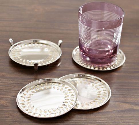 จานรองแก้วโลหะทำด้วยมือลายดอกไม้วินเทจสำหรับตกแต่งโต๊ะระดับพรีเมียมลายนูนไม่ซ้ำใครและทนทานยาวนาน