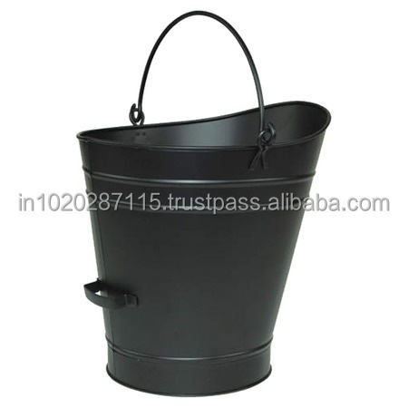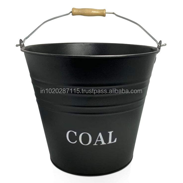 ถังเหล็กถ่านหินทำด้วยมือสไตล์วินเทจสำหรับเก็บเตาผิงในบ้านพร้อมผิวสีดำแบบเรียบง่ายและที่จับแข็งแรง